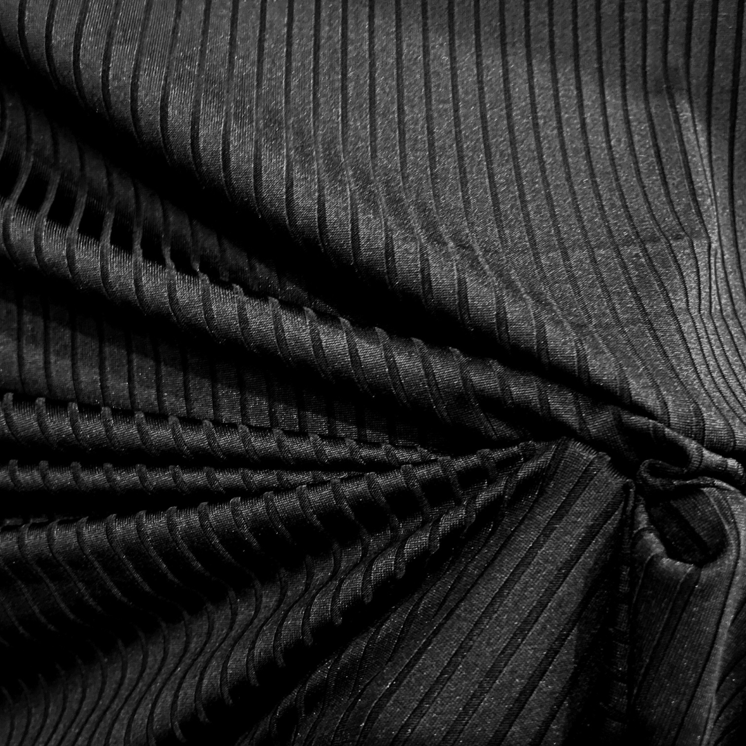 A Malha Canelada apresenta ótimo caimento e um leve brilho em sua superfície. Possui elastano em sua estrutura sendo uma malha bastante flexível e maleável e se adapta aos movimentos do corpo podendo ceder bastante.