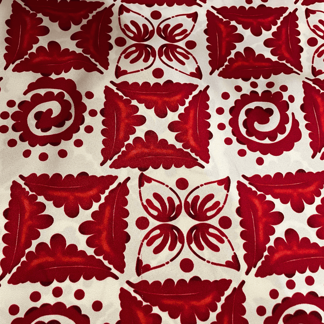 Tecido Crepe Sarjado Estampado - Geométrico Vermelho - 1,50m de Largura | Textura Diagonal e Não Amassa
