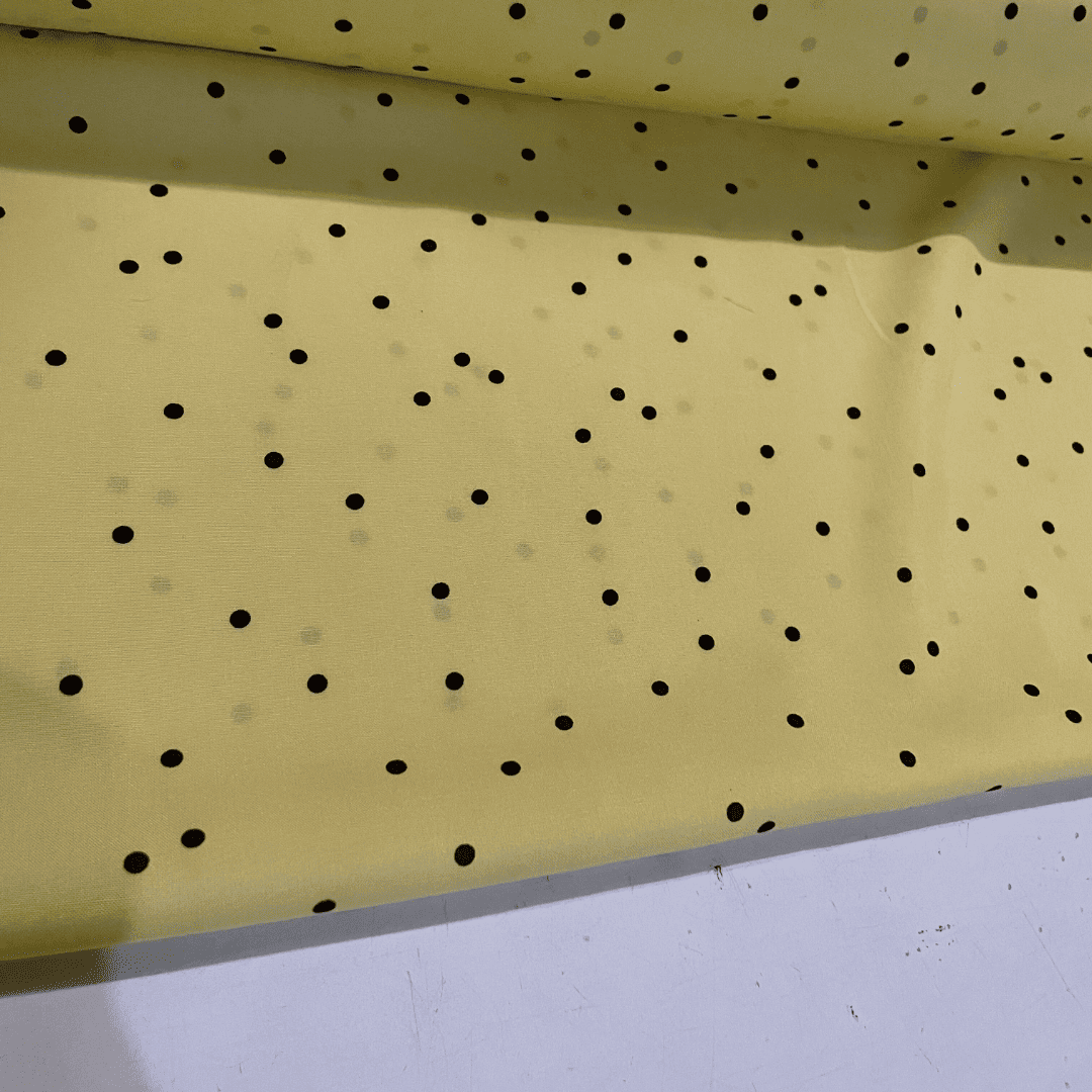 Tecido Viscose Estampada - Poá Preto Fundo Amarelo - 1,47m de Largura | Poá 1cm | Leveza, Frescor e Caimento Fluido