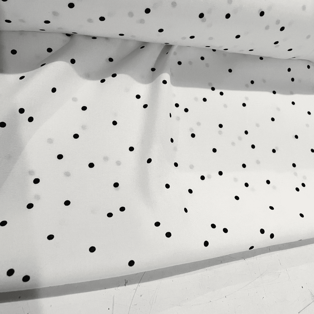 Tecido Viscose Estampada - Poá Preto Fundo Branco - 1,47m de Largura | Poá 1cm | Leveza, Frescor e Caimento Fluido