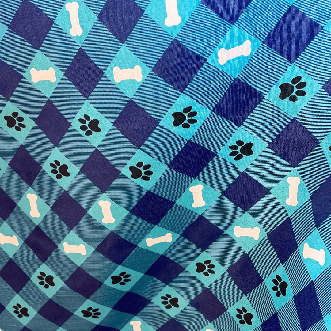 Tricoline Estampado 100% Poliéster - Pet Xadrez Azul - 1,50m de Largura