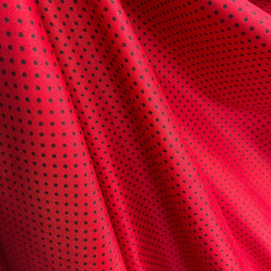 Tricoline Estampado Poliéster - Poá Preto Fundo Vermelho - 1,50m de Largura