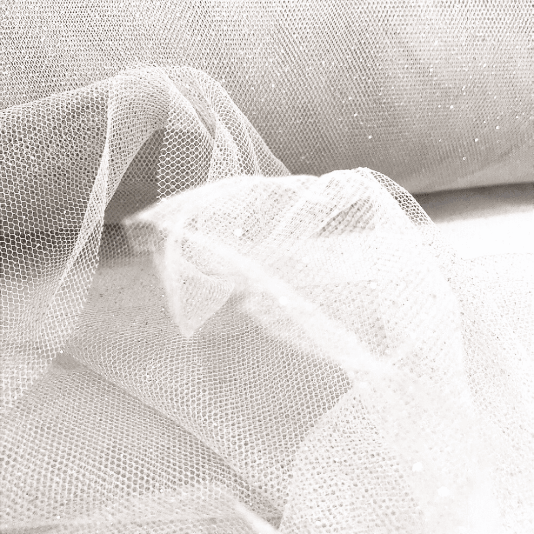 O Tule Glitter é um tecido de tramas finas e delicadas com superfíicie brilhante e transparente e ótimo caimento podendo ser utilizado em cima de outros tecidos ou de maneira individual. Podendo ser facilmente utilizado na confecção de véus de noiva, ballet, vestidos ou até mesmo em artesanato.